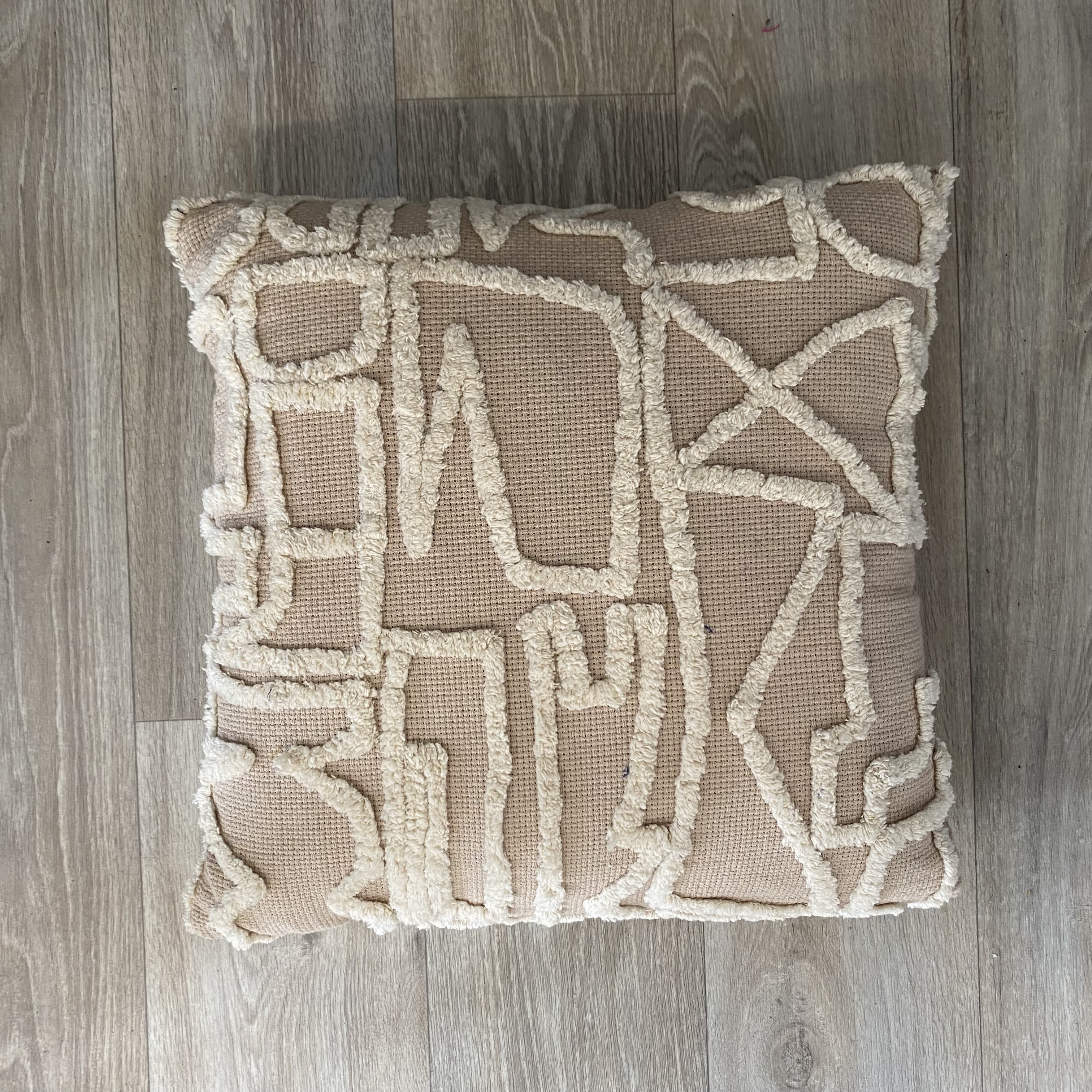 Stunning beige coloured cushion with an off white tufted pattern – good as a filler for your boho picnic party or wedding seating area