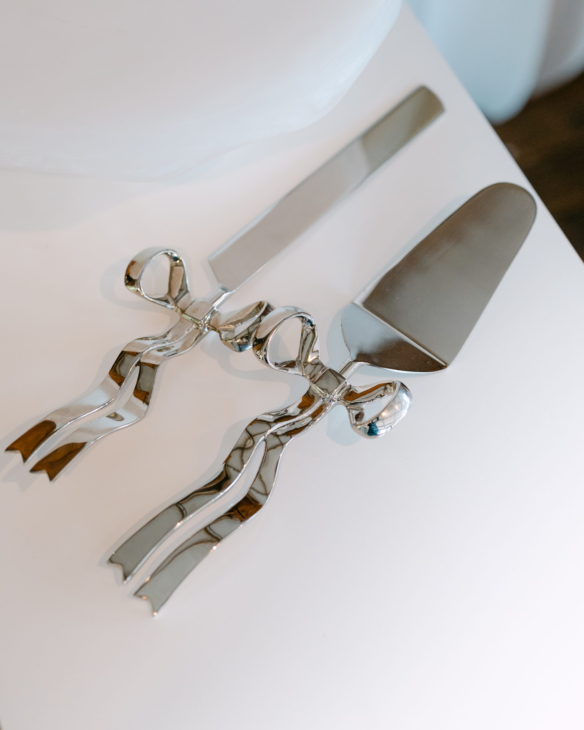 Bow Cake Knife and Server Set – Silver