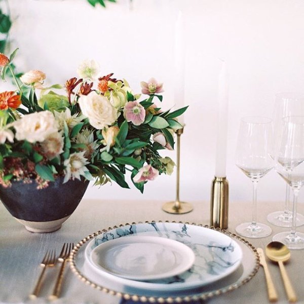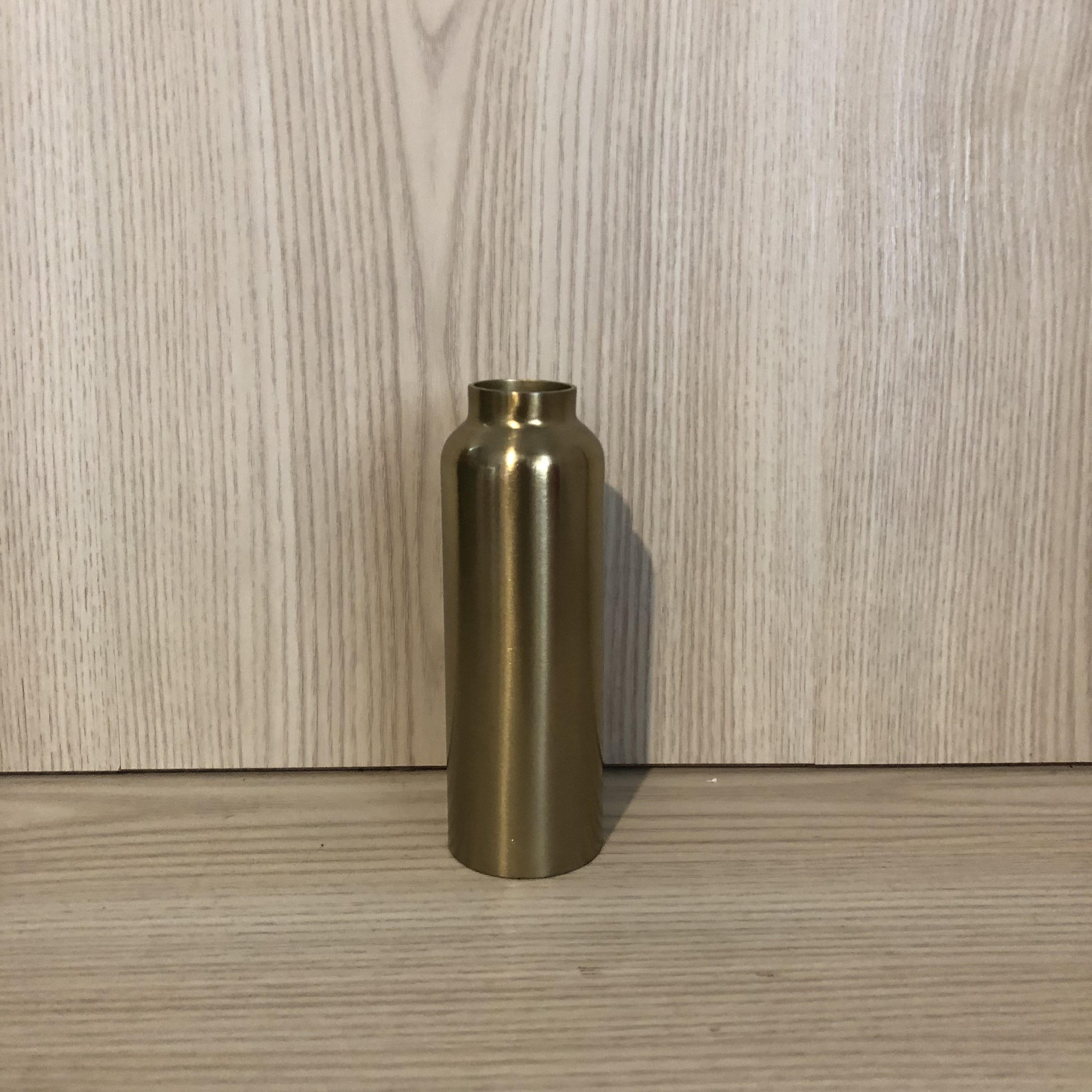 This sleek matte brass candle holder accommodates a dinner candle, perfect for modern table decor. Mix and match with our marble tealight and candle holders