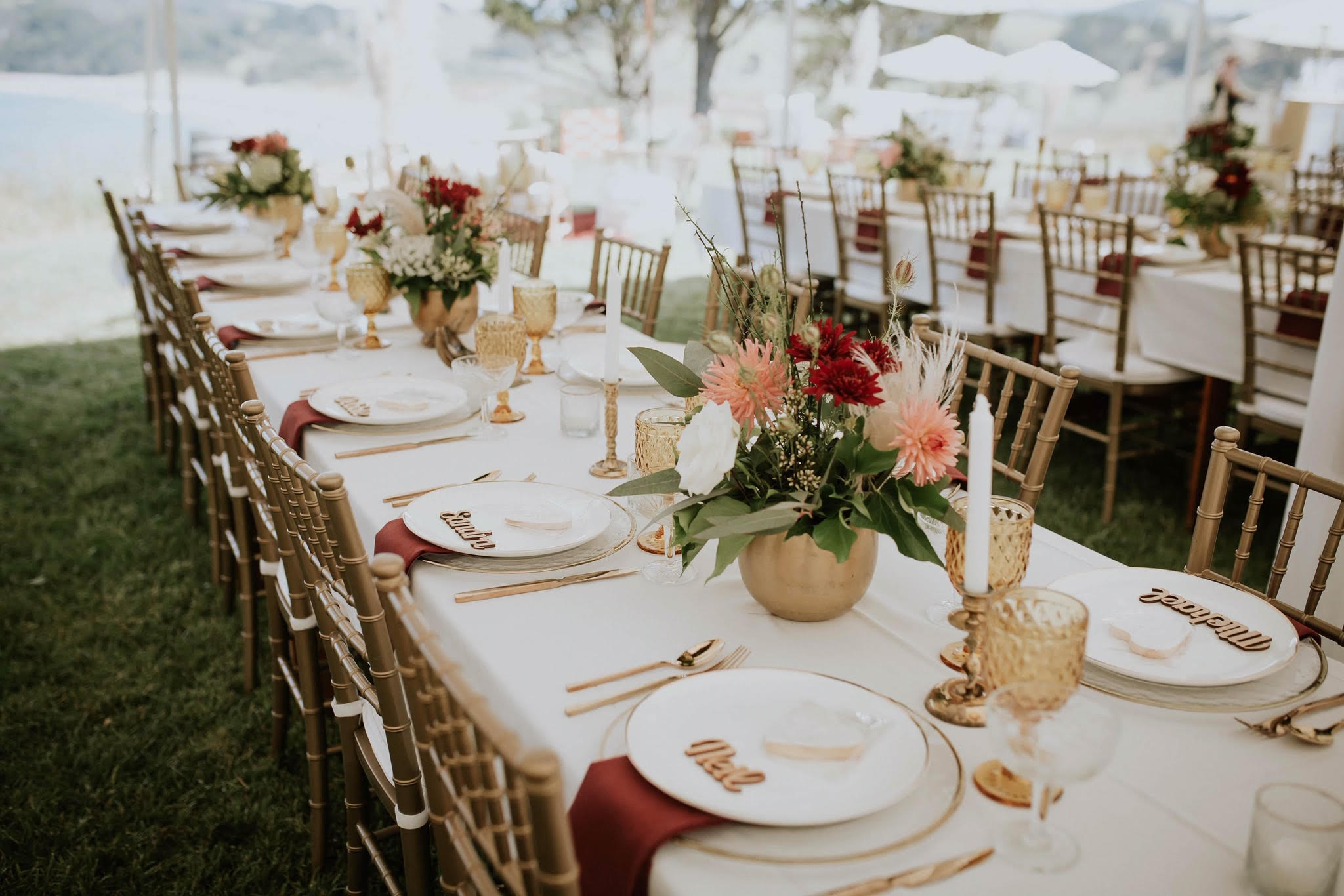 Please enquire about our new range of Gold Chiavari Chairs (also known as Tiffany Chairs), perfect for your glam wedding