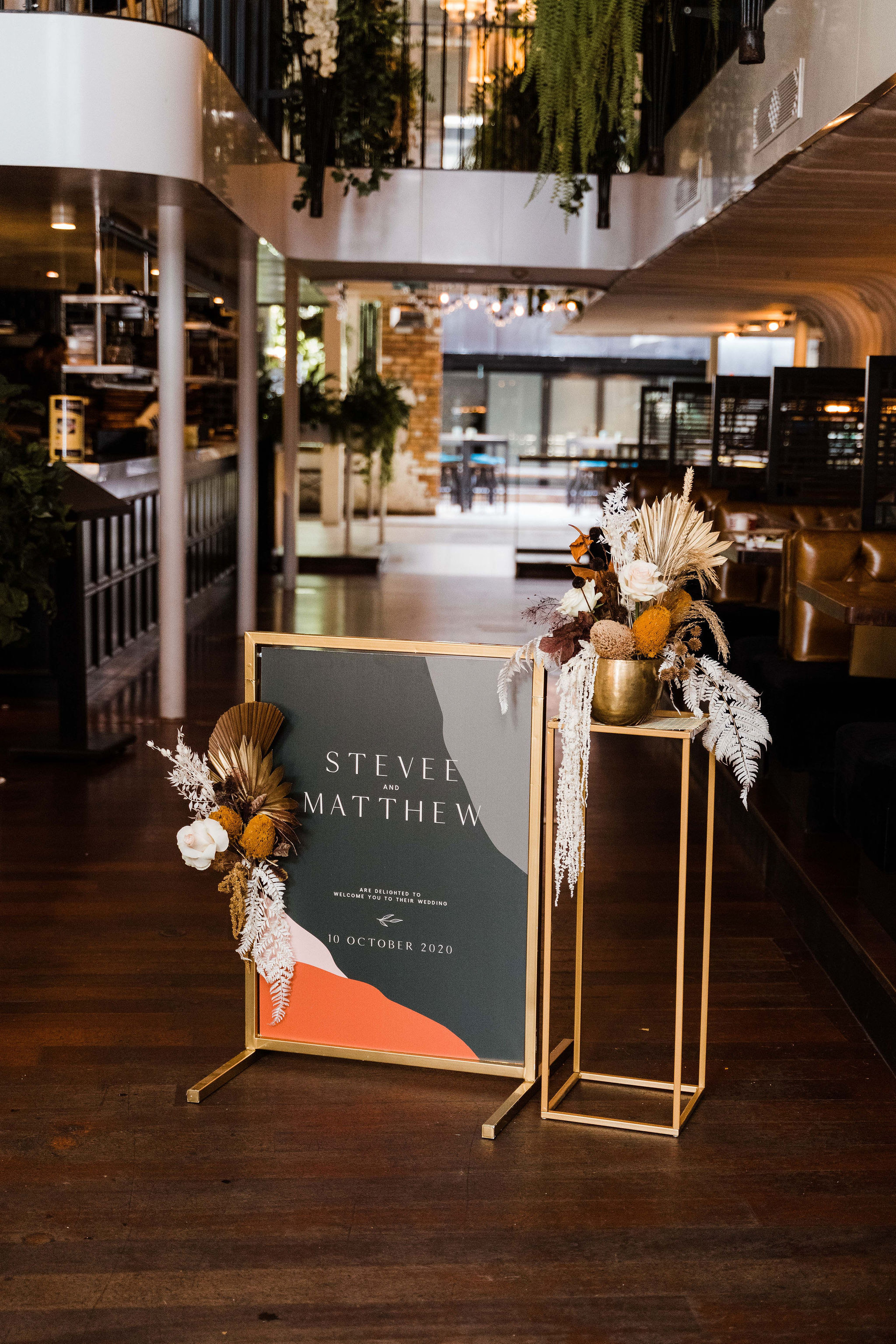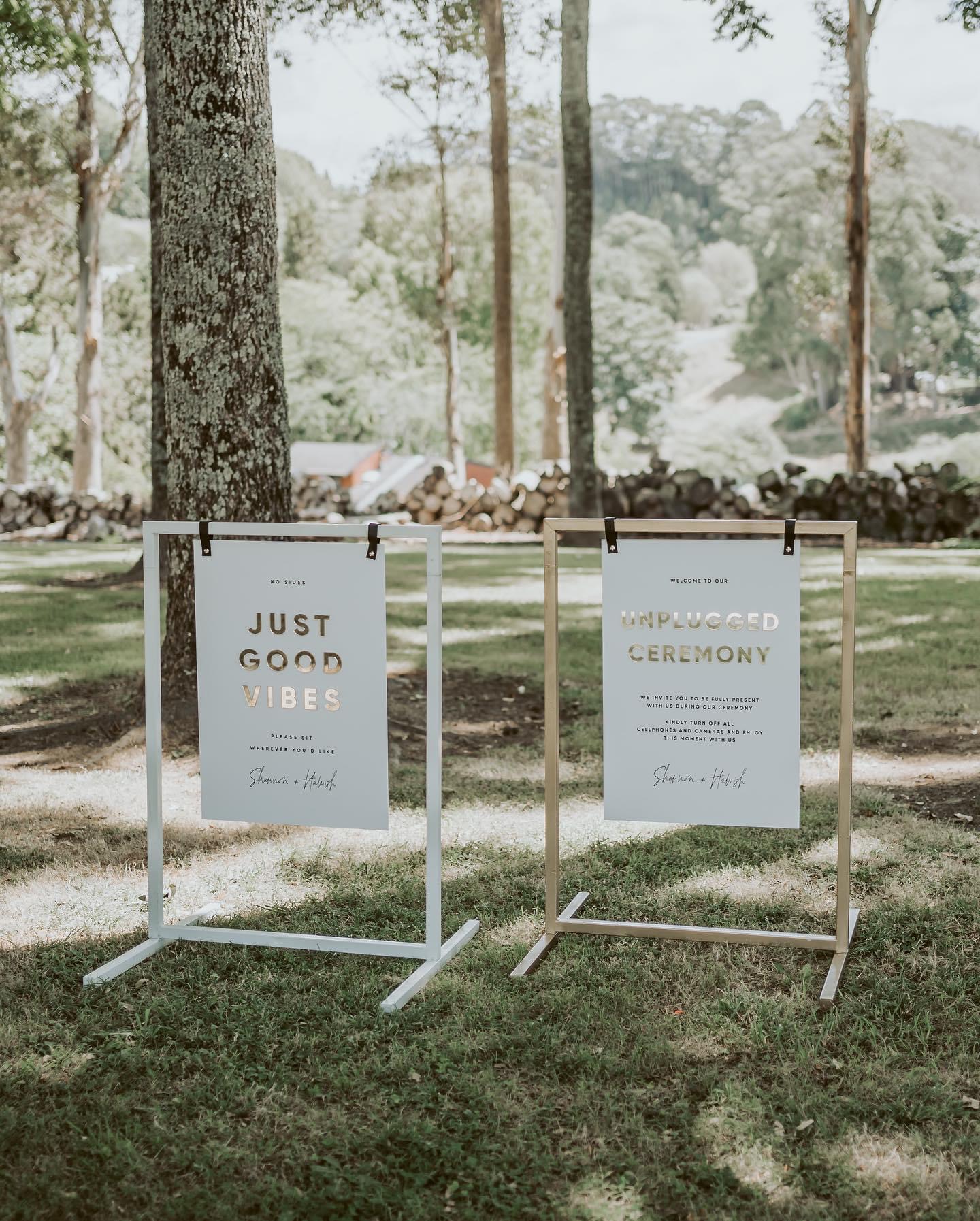 Hang your signage in style with our new gold signage stand. Standing 93cm tall – use it to hang your wedding welcome sign or guest seating chart.