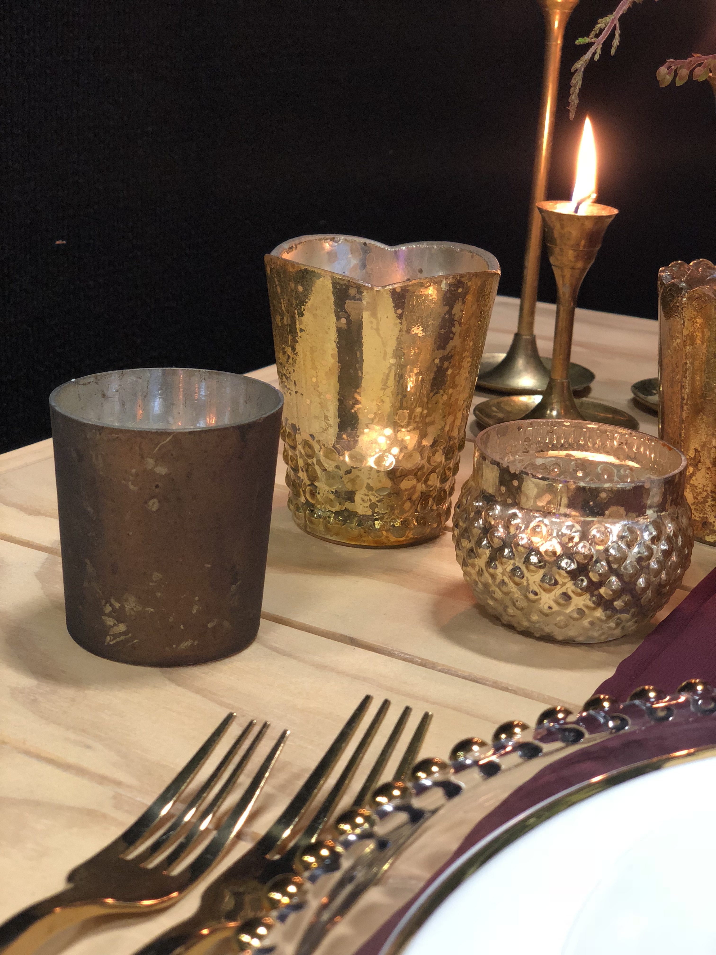 A moody swirled marble look tealight holder in golds