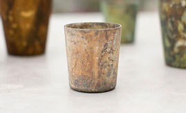 A moody swirled marble look tealight holder in whites and golds