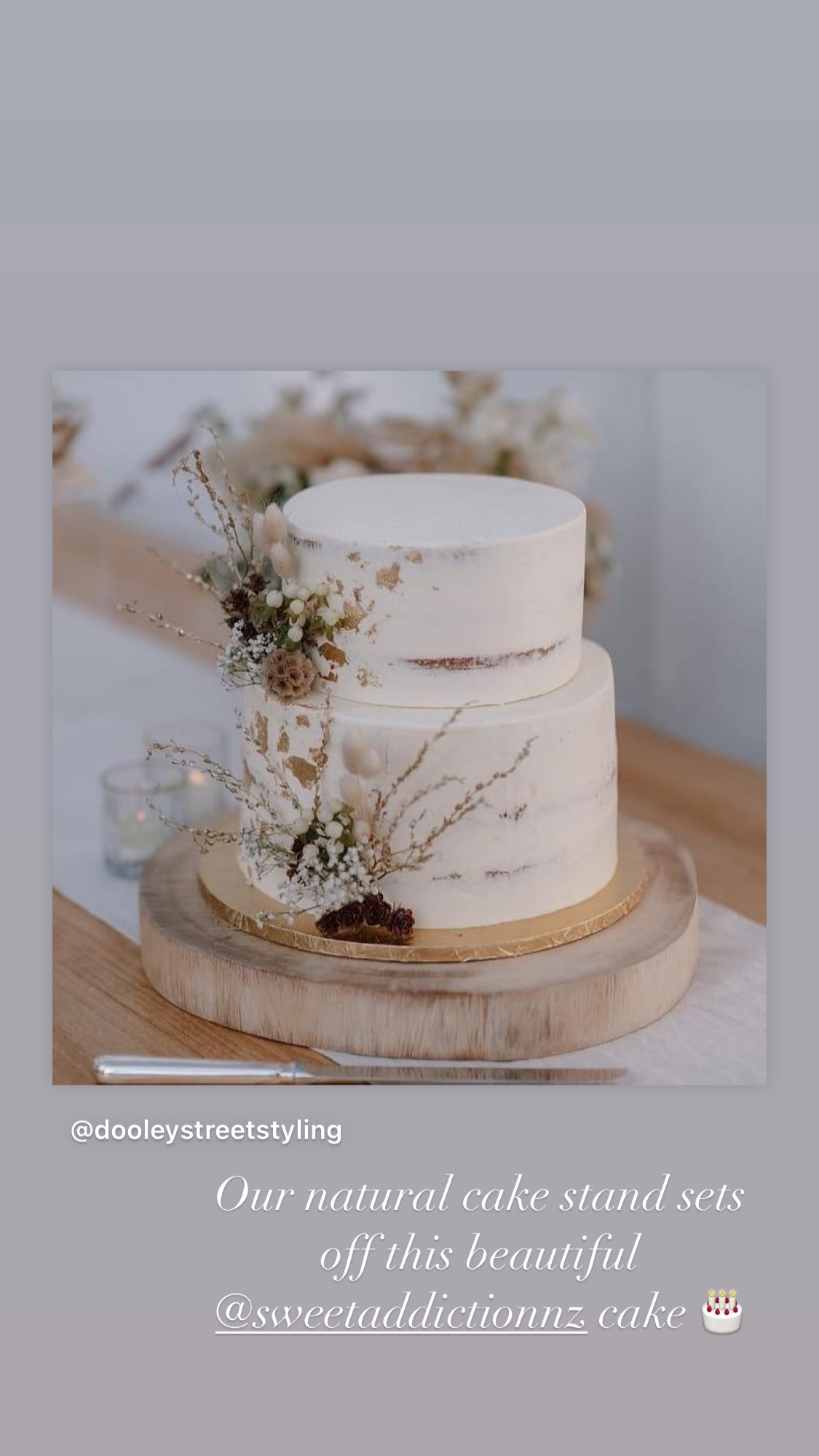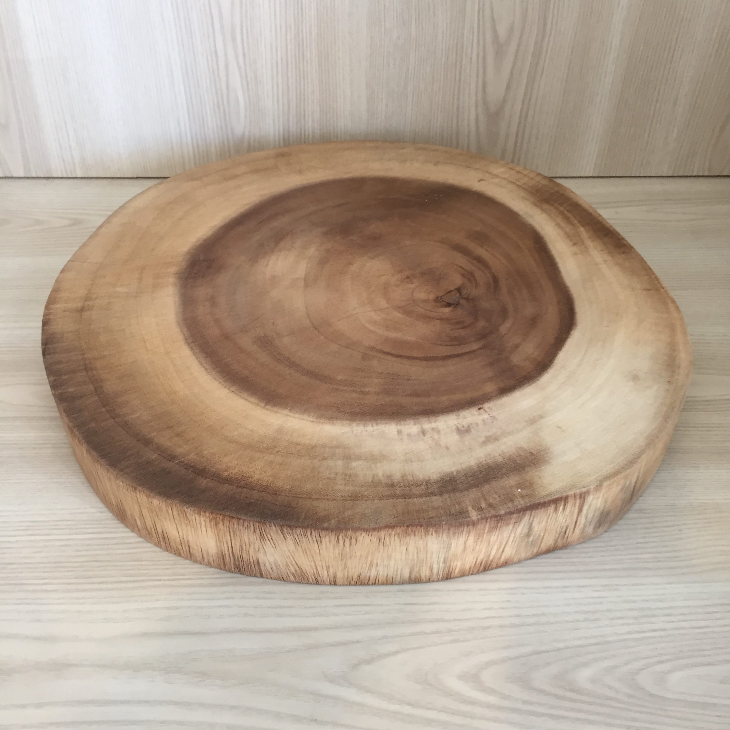 A natural wooden trunk slice board which is food safe. It has been sanded and stained to a smooth finish. Perfect for use as a cake stand or on a grazing or dessert table