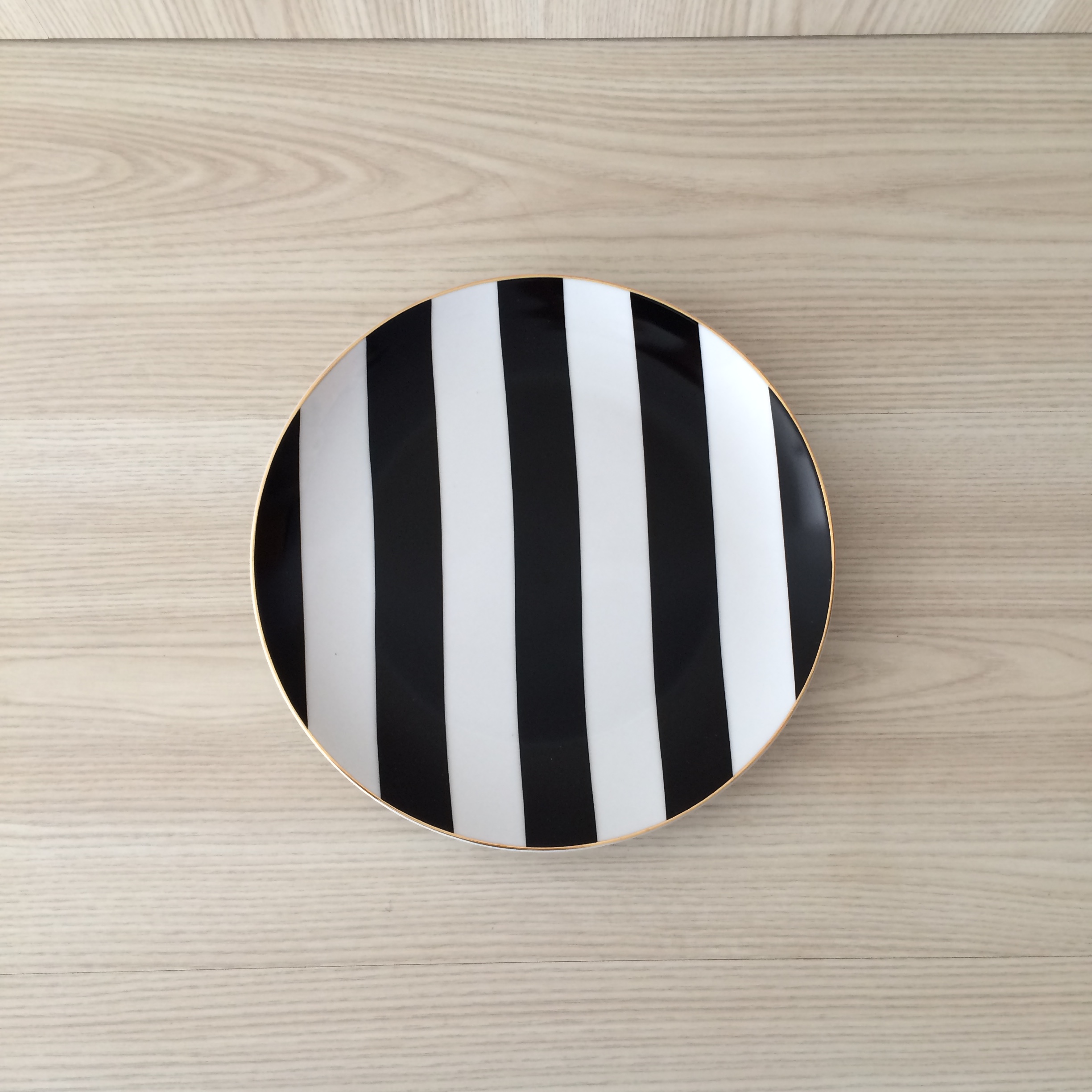 Bold black and white stripe plate with gold trim