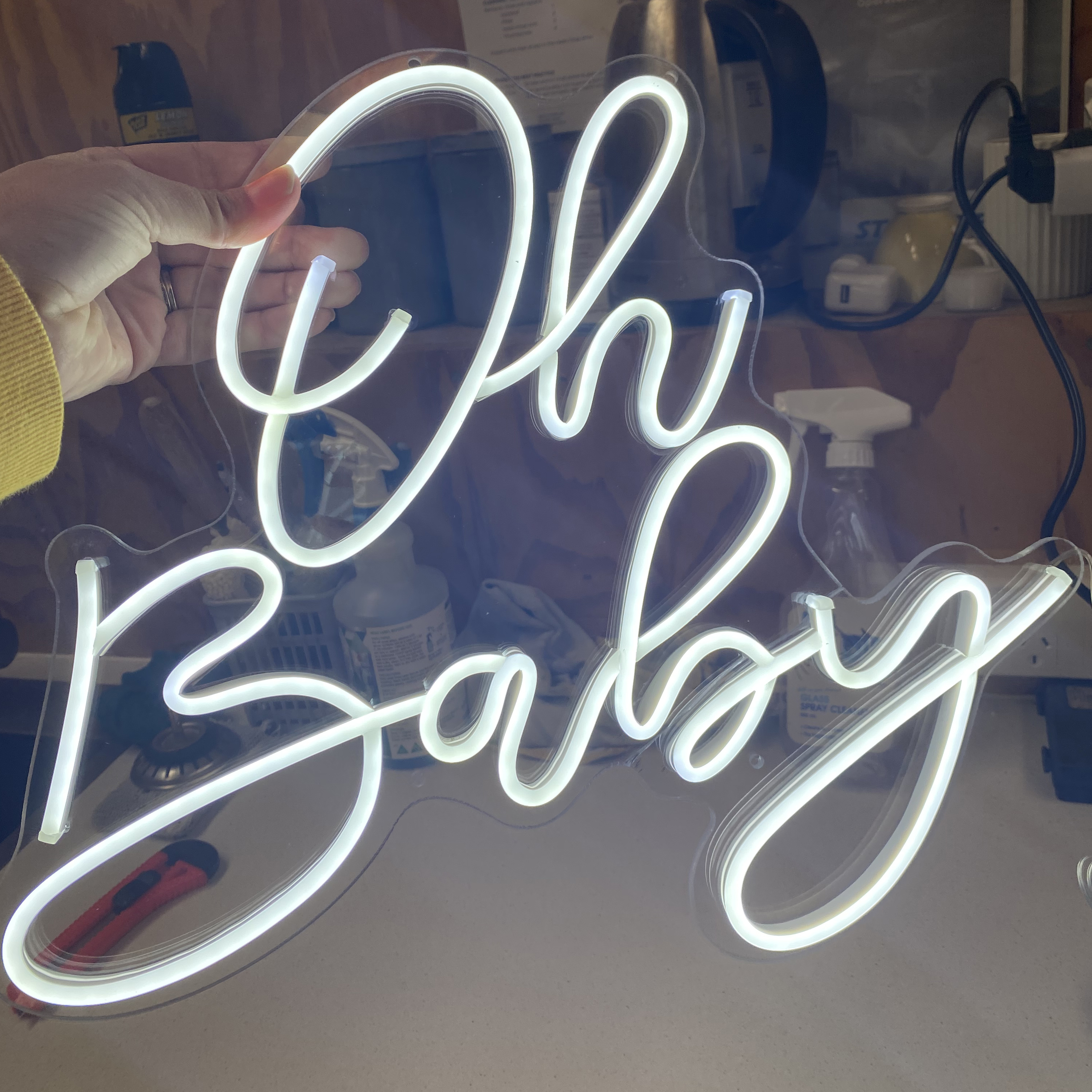 Our stunning cool white “Oh Baby” neon is the perfect addition to your baby shower!