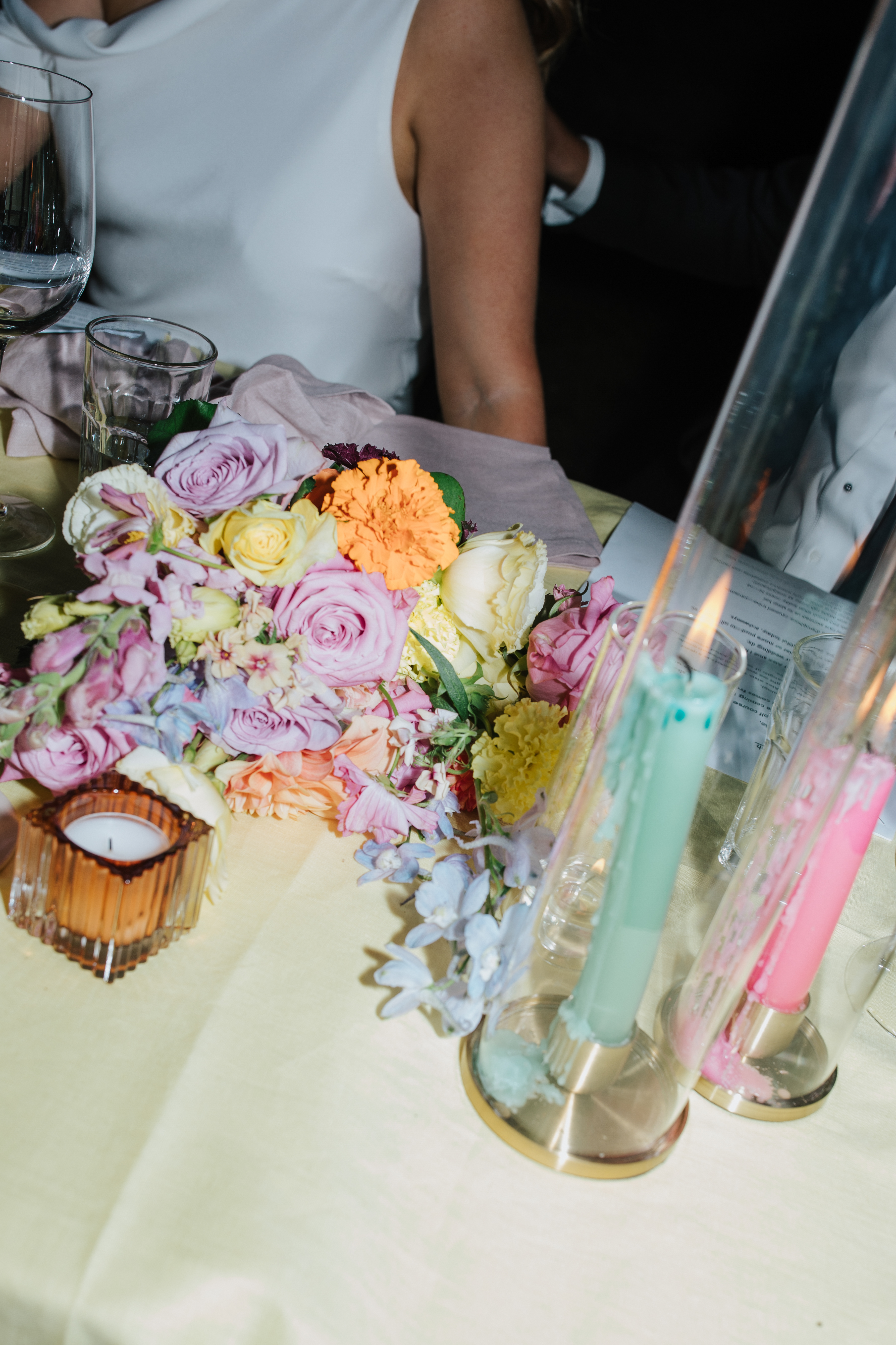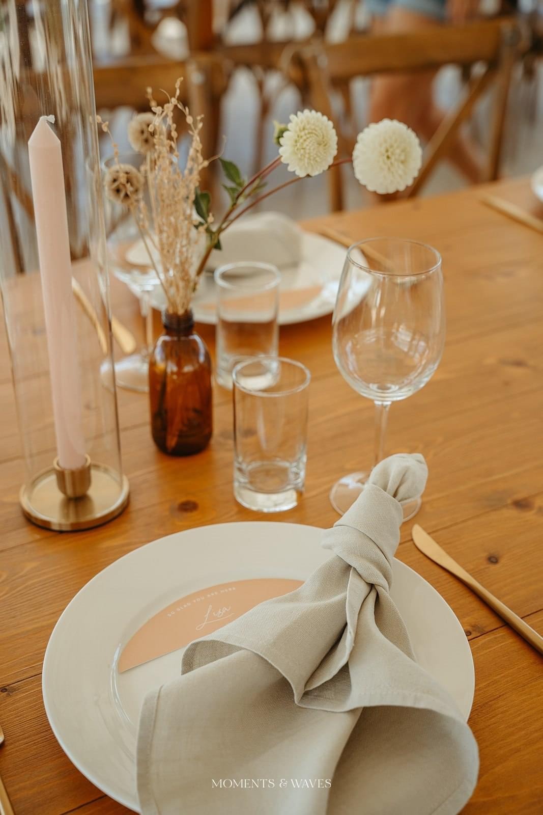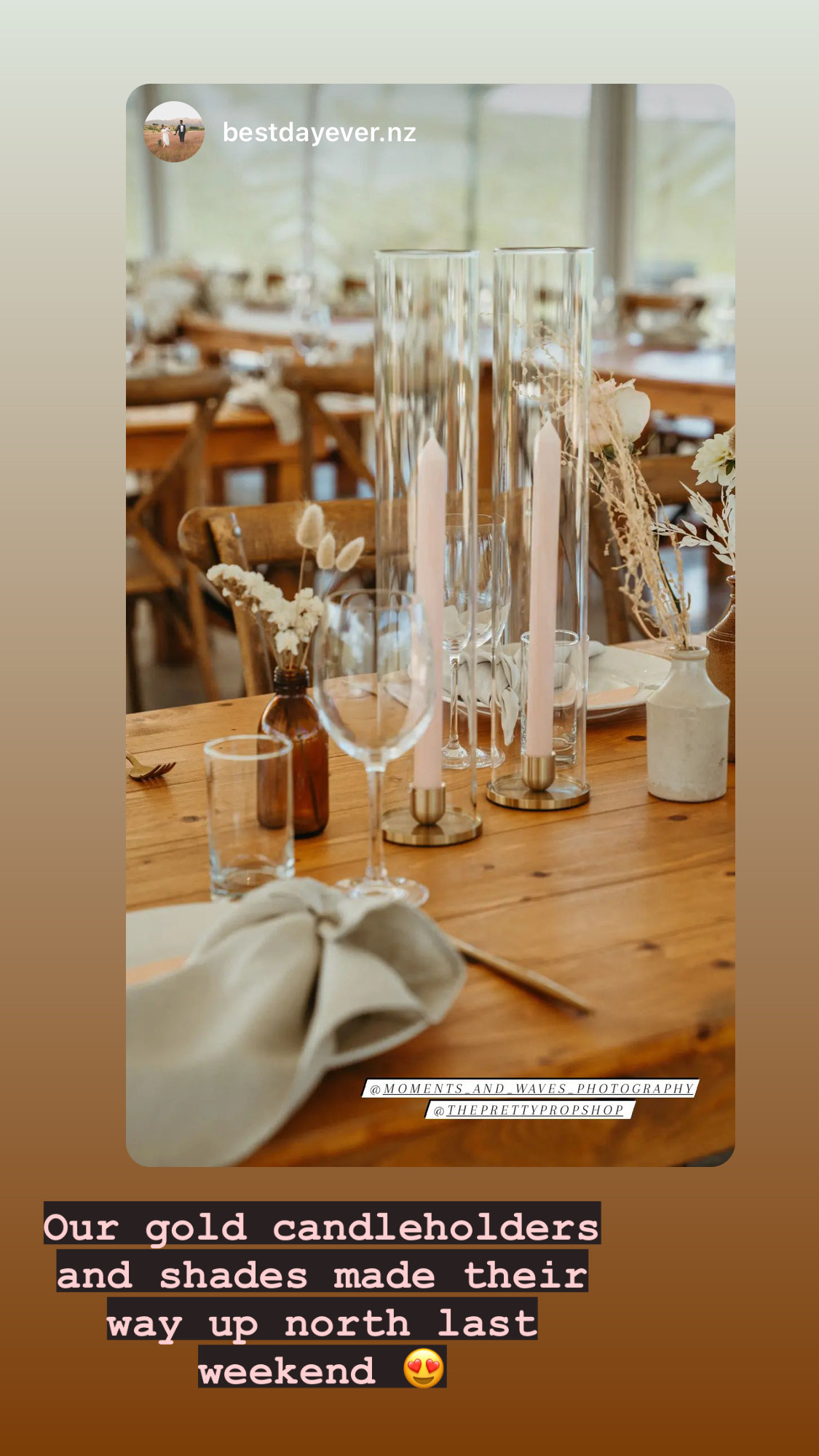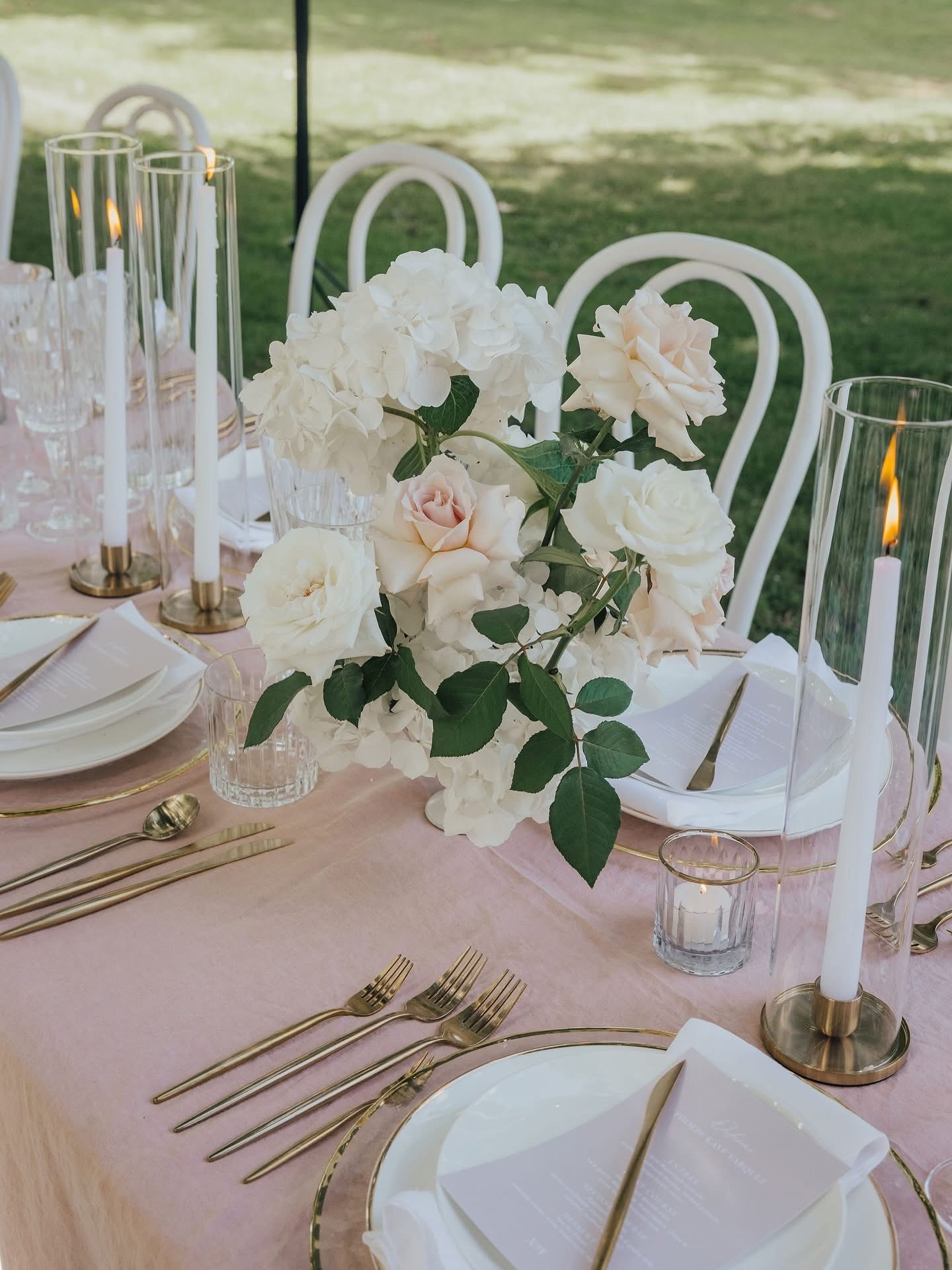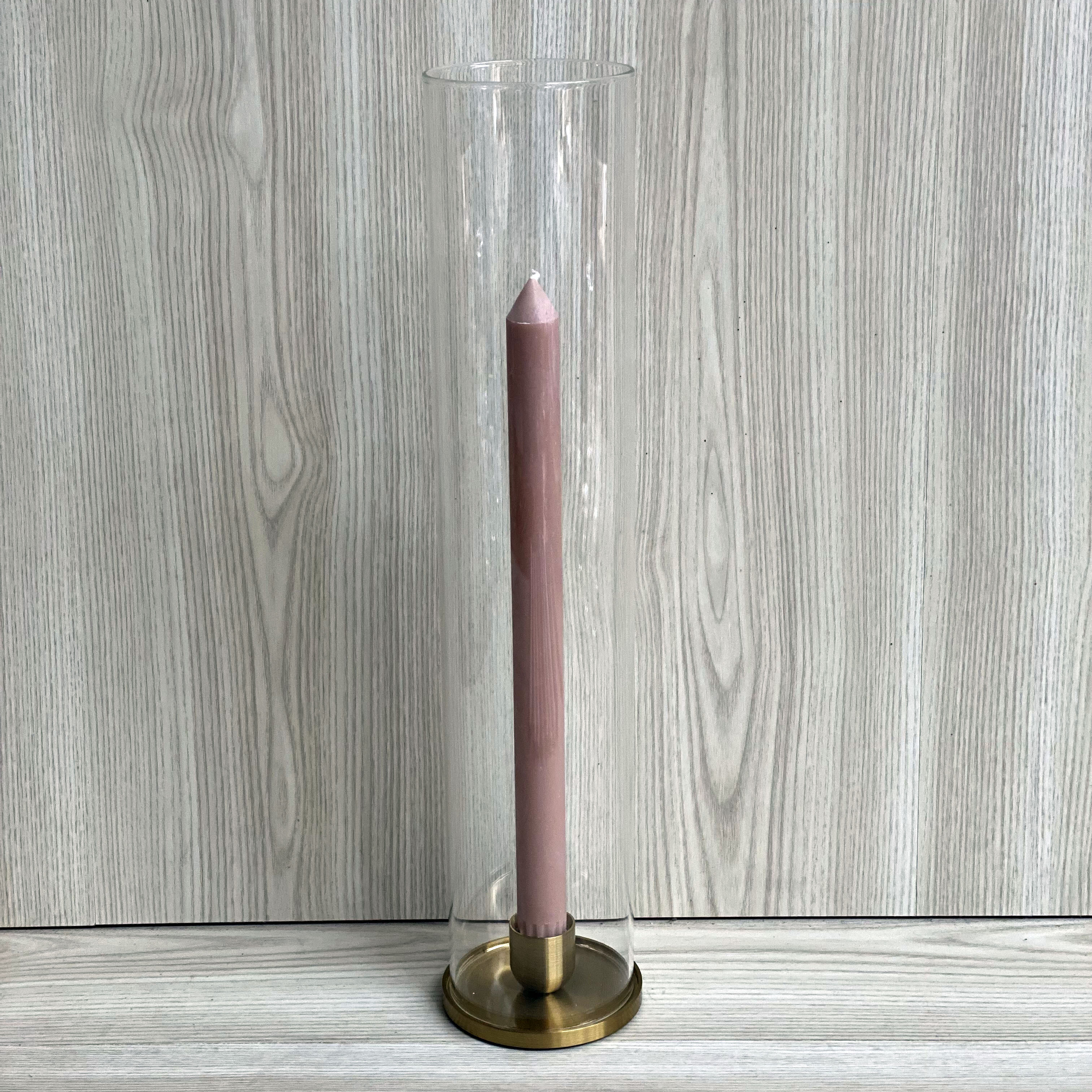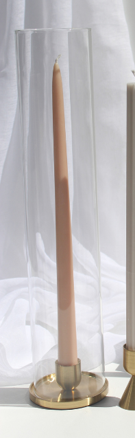 The Ophelia brushed gold candleholder is designed to stand alone or combine with our 8x40cmH glass candle shade.  Perfect for outdoor weddings or where you need the candle kept protected