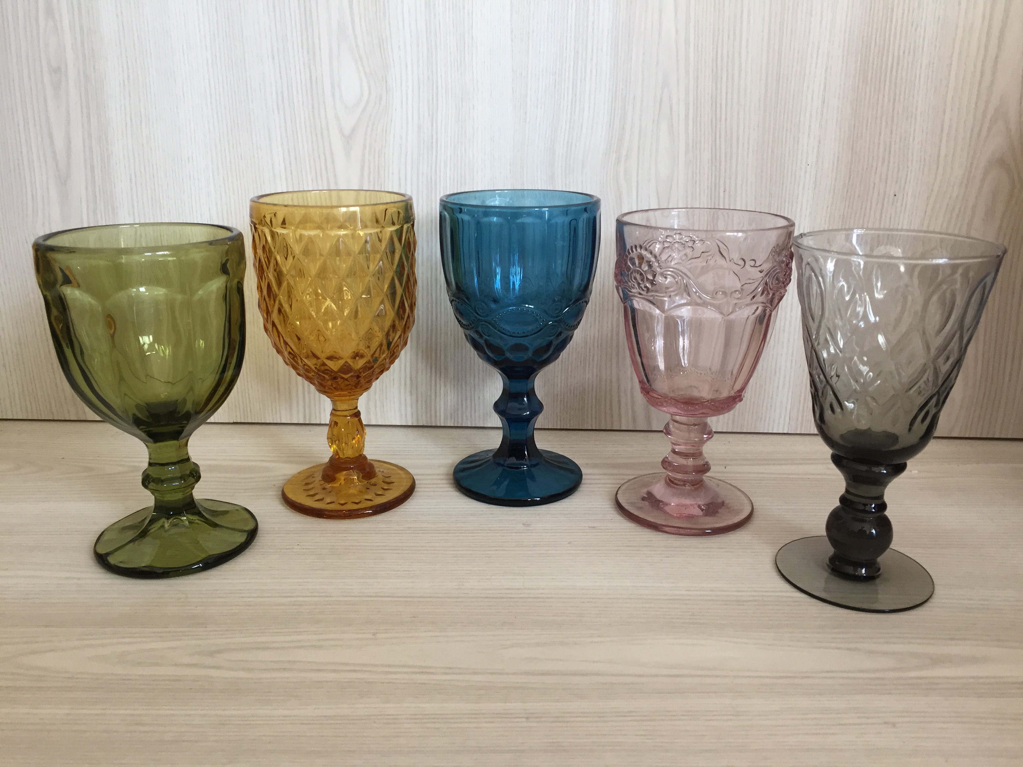 Solid glass wine goblet with a quilted pattern in a golden amber colour. Use as a cute wee vase or a drinking vessel. Mix and match with our other coloured goblets for an eclectic look