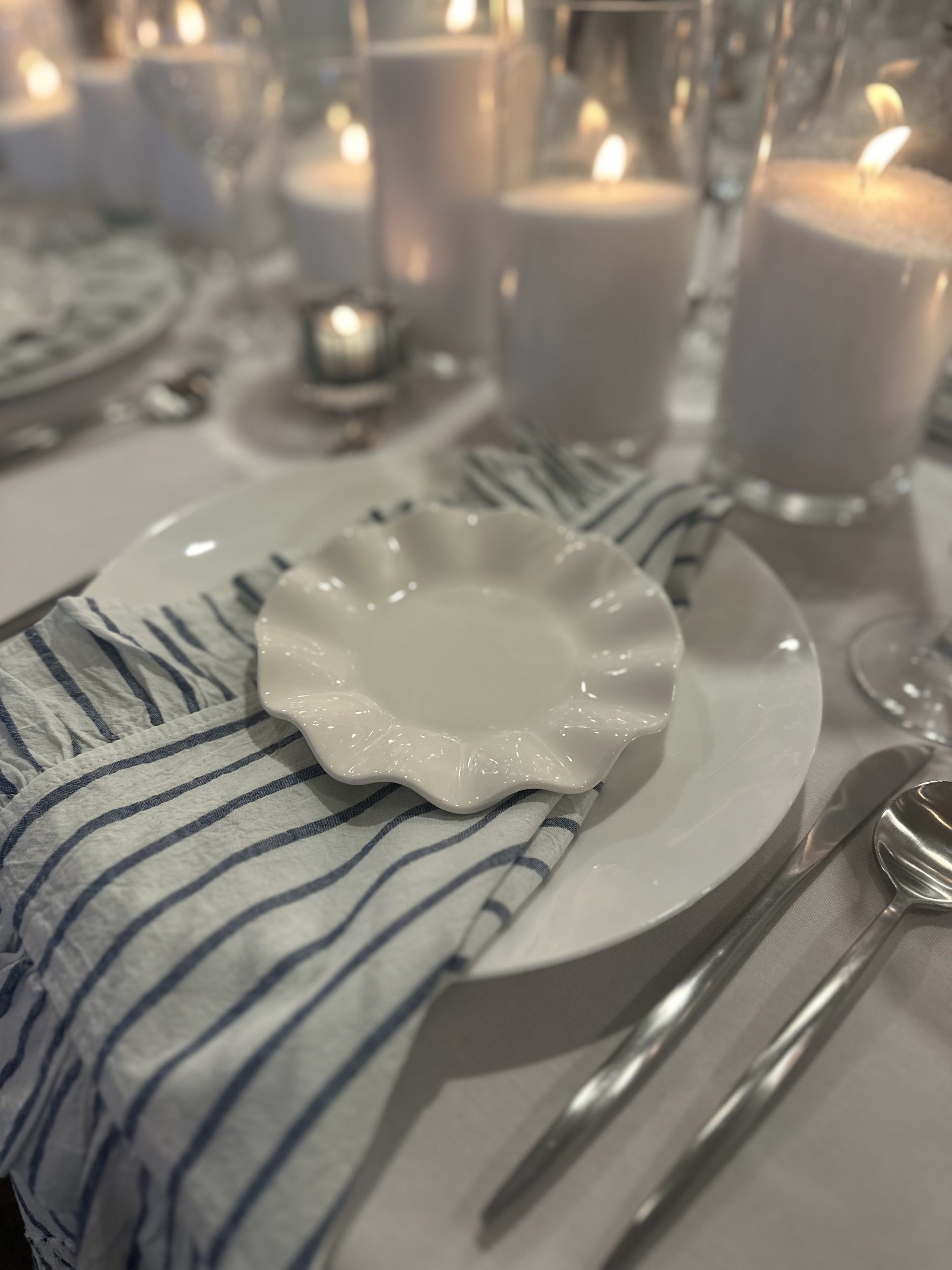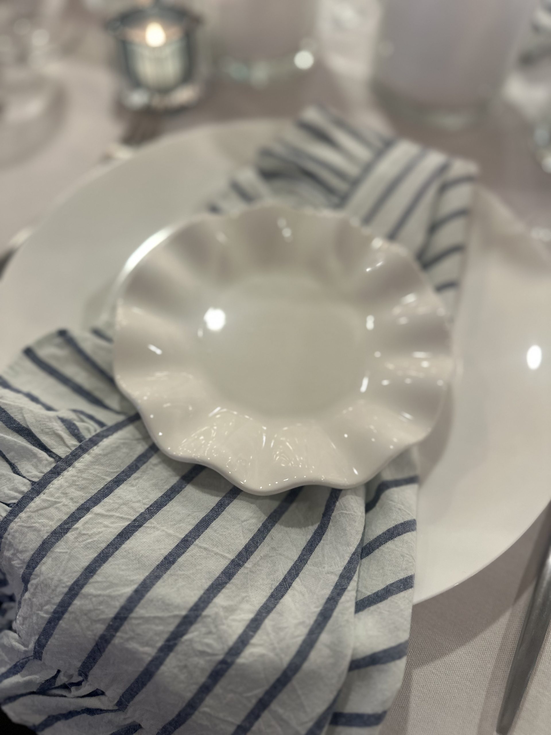 Our Ruffle Appetizer Plate in white combines elegance and practicality, perfect for serving hors d’oeuvres and desserts with a touch of style.