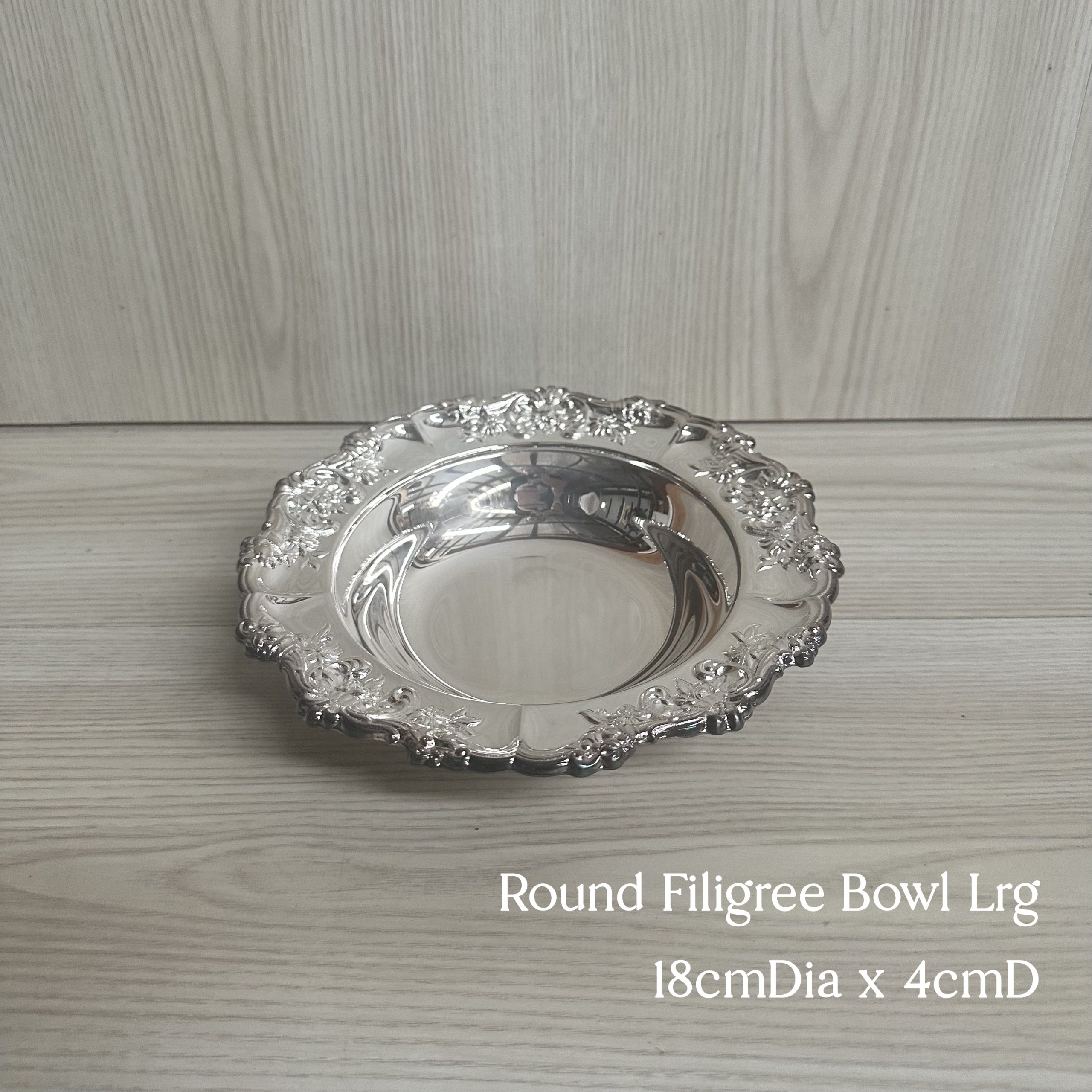 Elevate your dining experience with our curated collection of Vintage Silver Bowls and Dishes in an assortment of designs and sizes.  They are perfect for both decorative and functional use on your dessert, caviar or grazing tables.