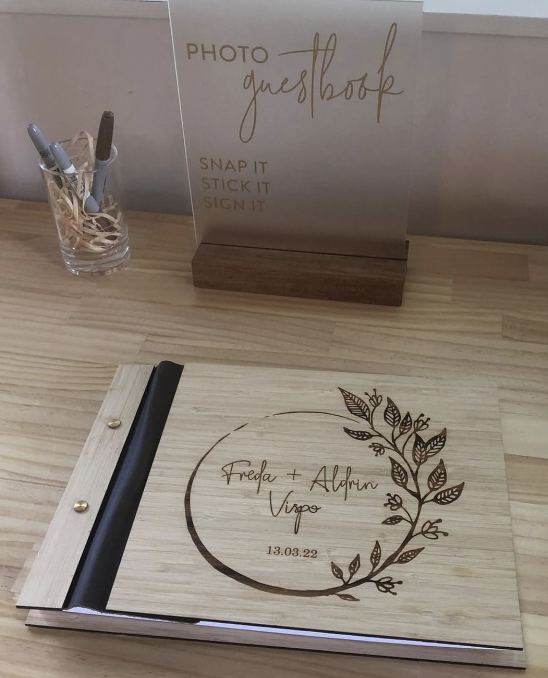 Willa Acrylic Photo Guestbook Sign – Frosted/Gold
